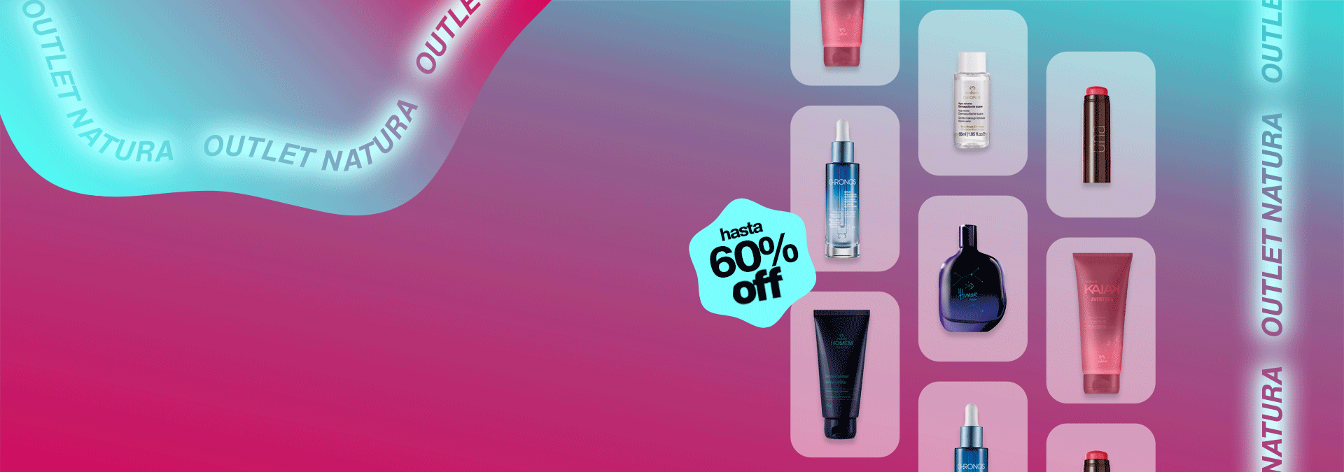 ¿conoces esa crema hidratante que deja tu piel radiante? ¿o ese aroma que te acompaña en todos los momentos? en el Outlet da Natura encuentras todo eso y mucho más: cosméticos, perfumería, productos para cabello, cuidado corporal... ¡solo elige tus favoritos y aprovecha las ofertas!