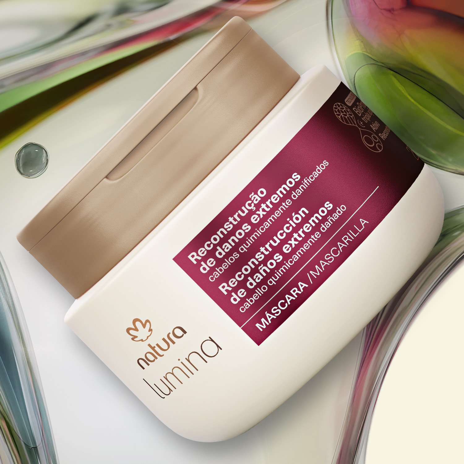 combinación exclusiva de activos que actúan en el relleno inteligente de los daños internos y en la reparación externa de la fibra capilar. promueve la reposición de lípidos y la reestructuración de las cutículas del cabello