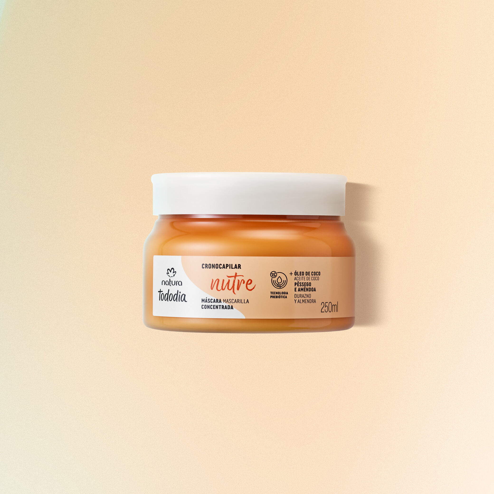 la Máscara Máscara Concentrada Nutritiva Tododia Durazno y Almendra contiene aceite de coco y aceite de almendra, que reponen los nutrientes, recuperan el cabello seco y con frizz, dejándolo ultra suave y brillante. TodoDía es el día para cuidar tu cabello con productos y fragancias deliciosas, que aportan bienestar a tu rutina de cuidado