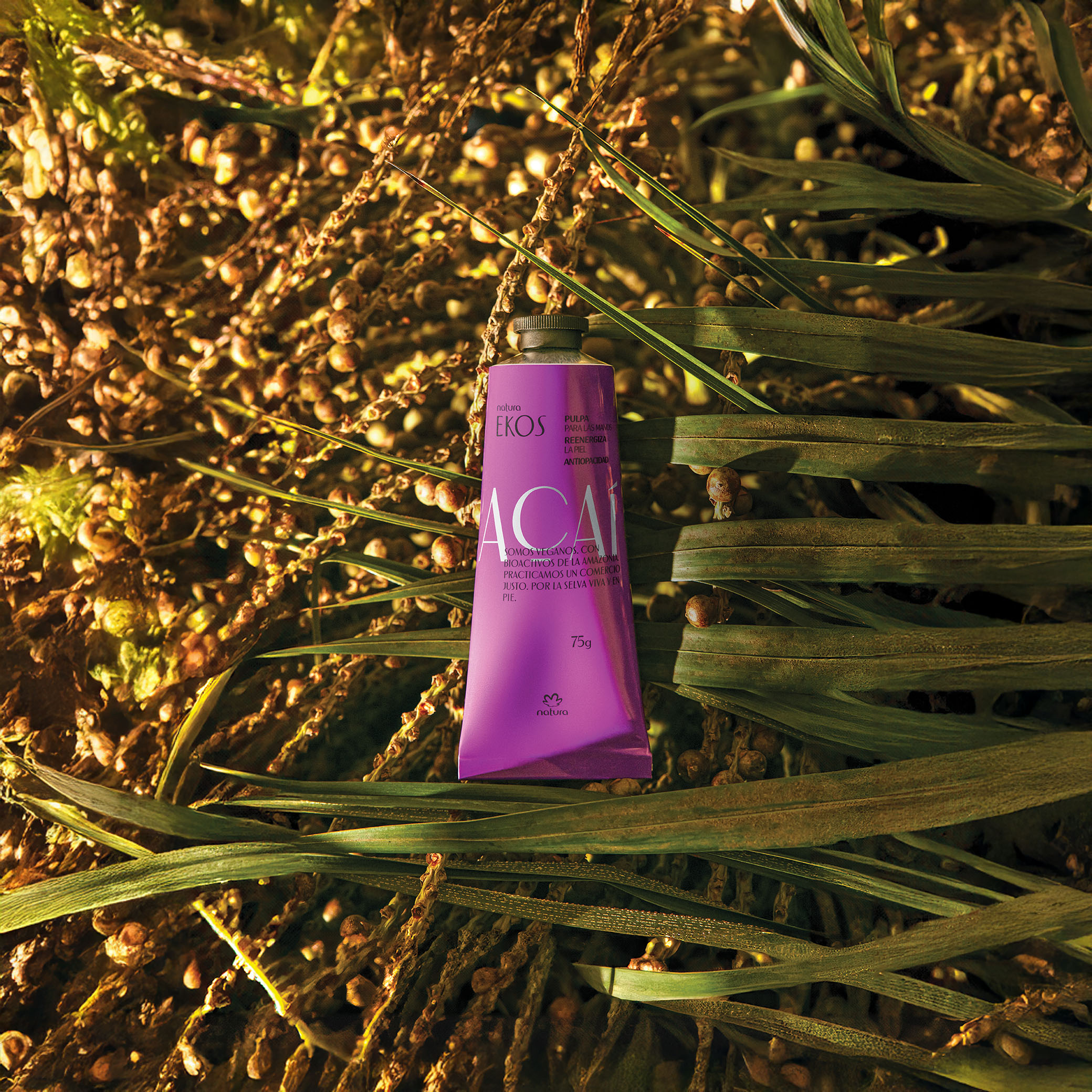 Natura Ekos Açaí es biobelleza con potencia antiopacidad para ti, apoyando la regeneración de la Amazonía. por eso, nuestro bioproceso incorporó en la fórmula no solo la pulpa, sino también la semilla del açaí, que antes se descartaba en la selva, promoviendo un mayor aprovechamiento del fruto