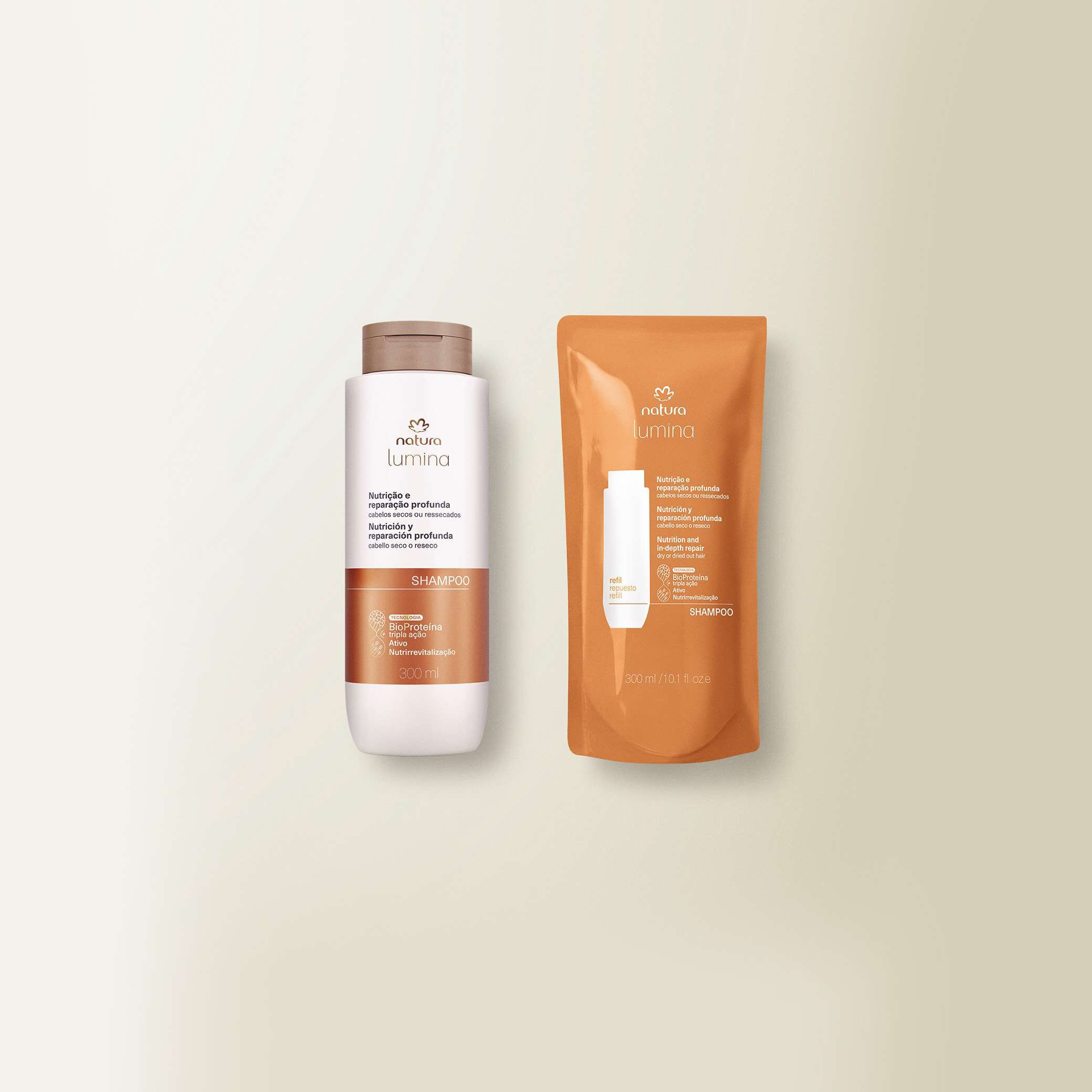 BioProteína Triple Acción + Activo Nutri-Revitalización: combinación exclusiva de activos que actúan en el relleno inteligente de los daños internos y en la reparación externa de la fibra capilar. promueven la recarga profunda de nutrientes esenciales, reparación y fortalecimiento del cabello